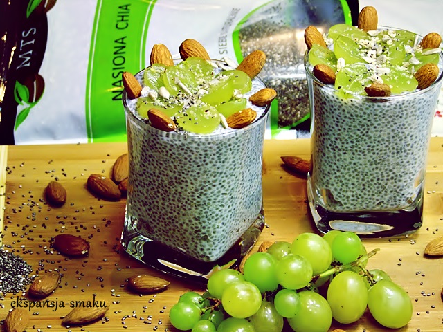 Deser z nasionami Chia migdałami i winogronem