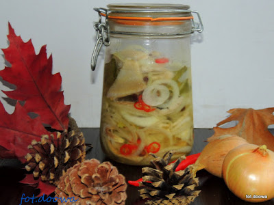 Układa się je w słoiku warstwami a efekt smakowy jest cudny jak się zmacerują i przejdą smakami chili i cebulki, zachęcam do zrobienia.