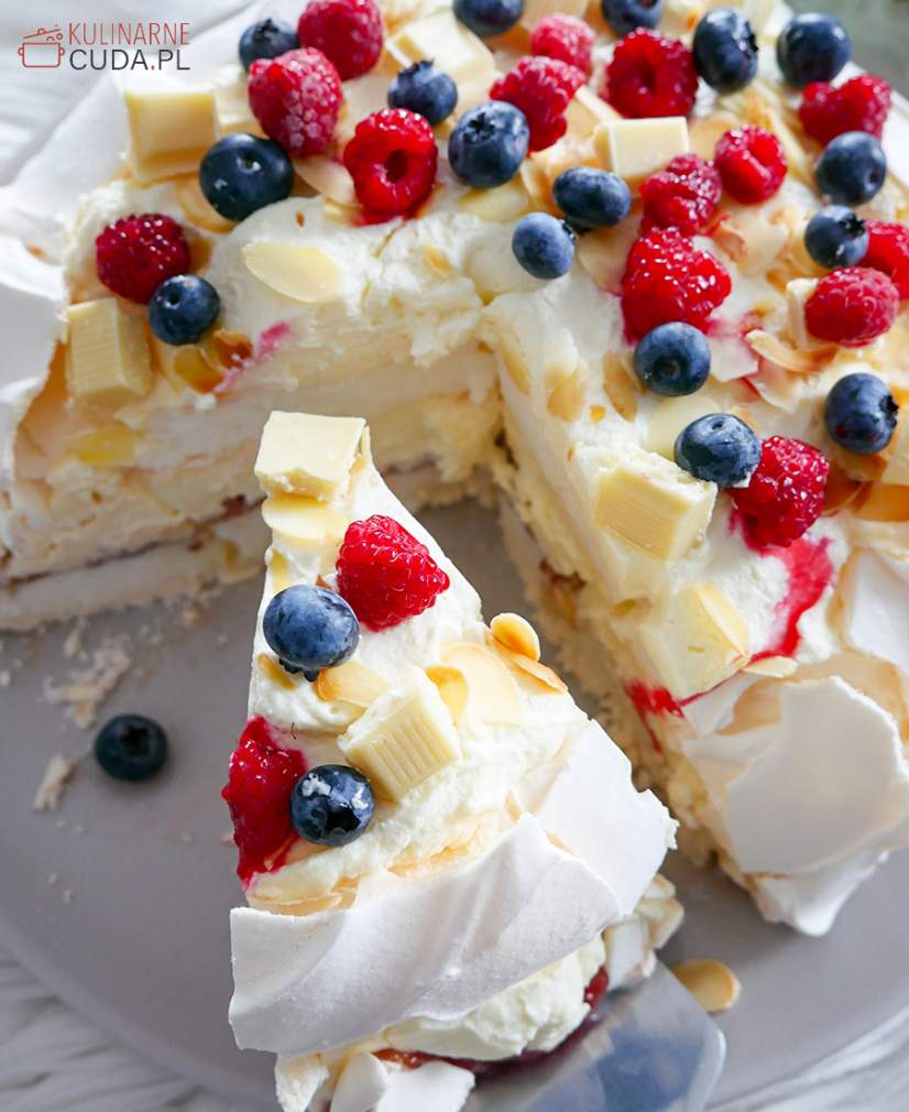 Tort bezowy z kremem i owocami to super pomysł na smaczny i…