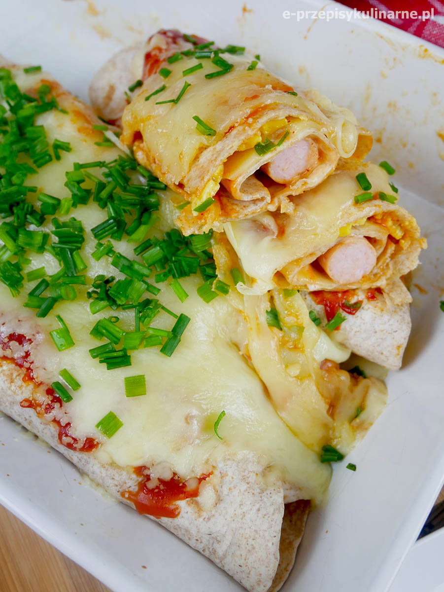 Zapiekane tortille z parówką i dwoma rodzajami sera to pyszne i błyskawiczne…