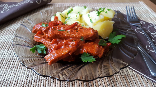 Kąski schabowe w sosie paprykowo-pomidorowym
