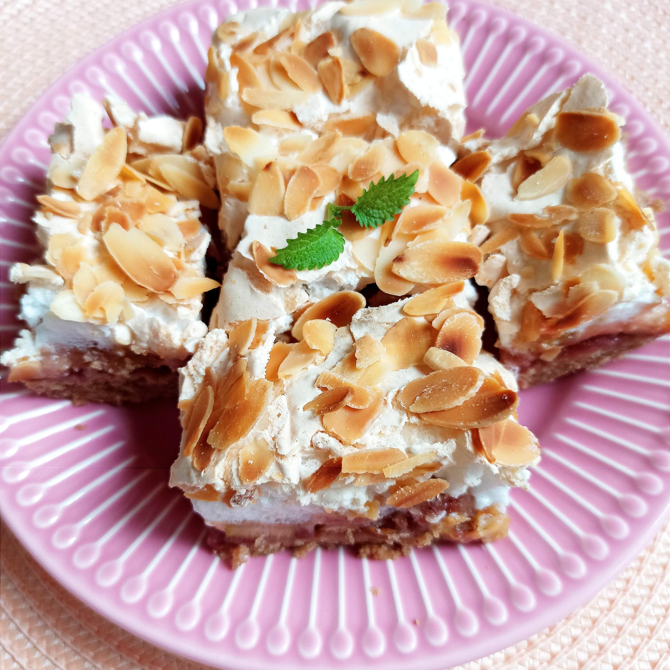 Przepyszne ciasto na kruchym spodzie z dodatkiem rabarbaru, konfitury malinowej, chrupiącej bezy…