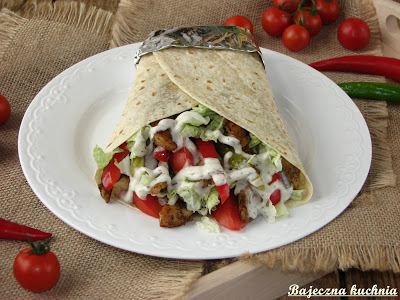 Tortilla z gyrosem jest smaczną i pożywna przekąską. Często robię ja na szybko gdy mam mało czasu. Możemy ją przyrządzić jako przekąskę na sylwestra.
