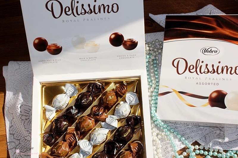 Pudełko zawiera praliny w trzech wariantach smakowych:– z nadzieniem mlecznym w białej…