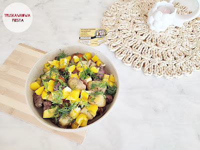 Wątróbka wołowa z ziemniakami, marchewką, cebulą i papryką