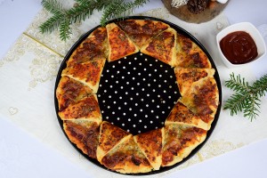 Kolejny pomysł na imprezową przekąskę czyli pizza zawijana. Przepis prosty, szybki i bardzo efektowny. Już jakiś czas temu, na jakimś portalu z pomysłowymi przepisami znalazłam takie zawijasy tylko były w formie na słodko jako ciasto drożdżowe z dżemem. Ja postanowiłam przerobić ten fajny pomysł na słoną przekąskę i muszę przyznać, że znika