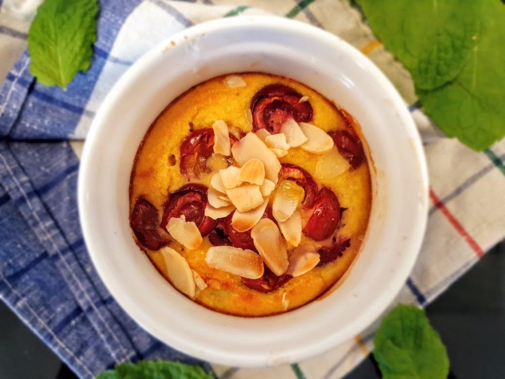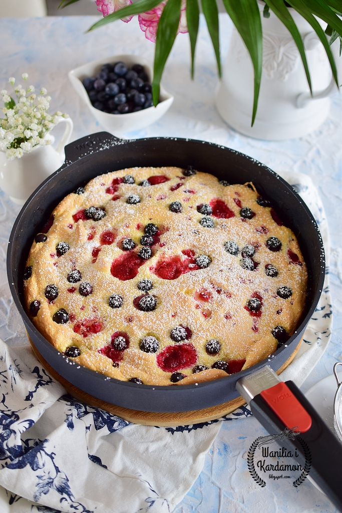 Puszysty i ciepły biszkoptowy omlet z owocami podany prosto z piekarnika to…