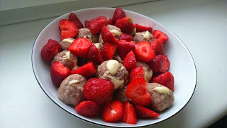 Karmelowy deser z jeżynami i kokosem