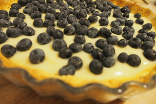 Krucha tarta z lekkim kremem budyniowym i borówkami amerykańskimi