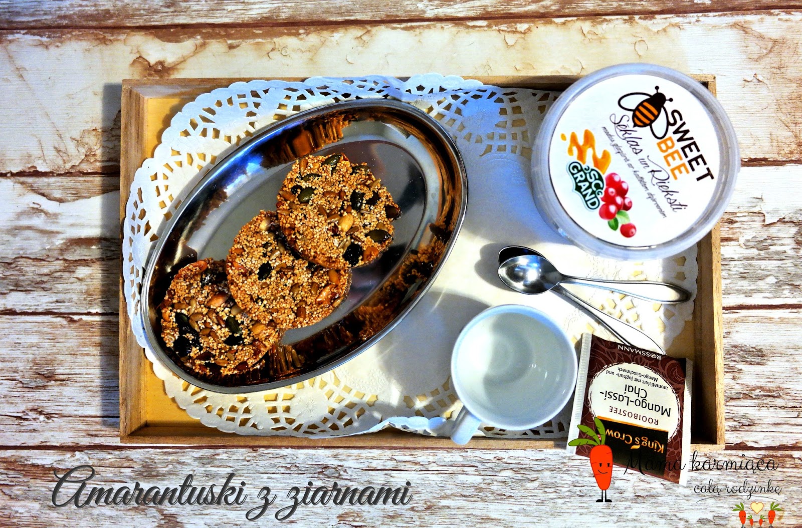 Potrzebujemy:1 szklanka poppingu z amarantusa100 nasion i orzechów w miodzie z żurawiną w całych kawałkach od najlepszeprodukty.com40 ml miodu sufletu malinowego od najlepszeprodukty.comMiód rozgrzewamy