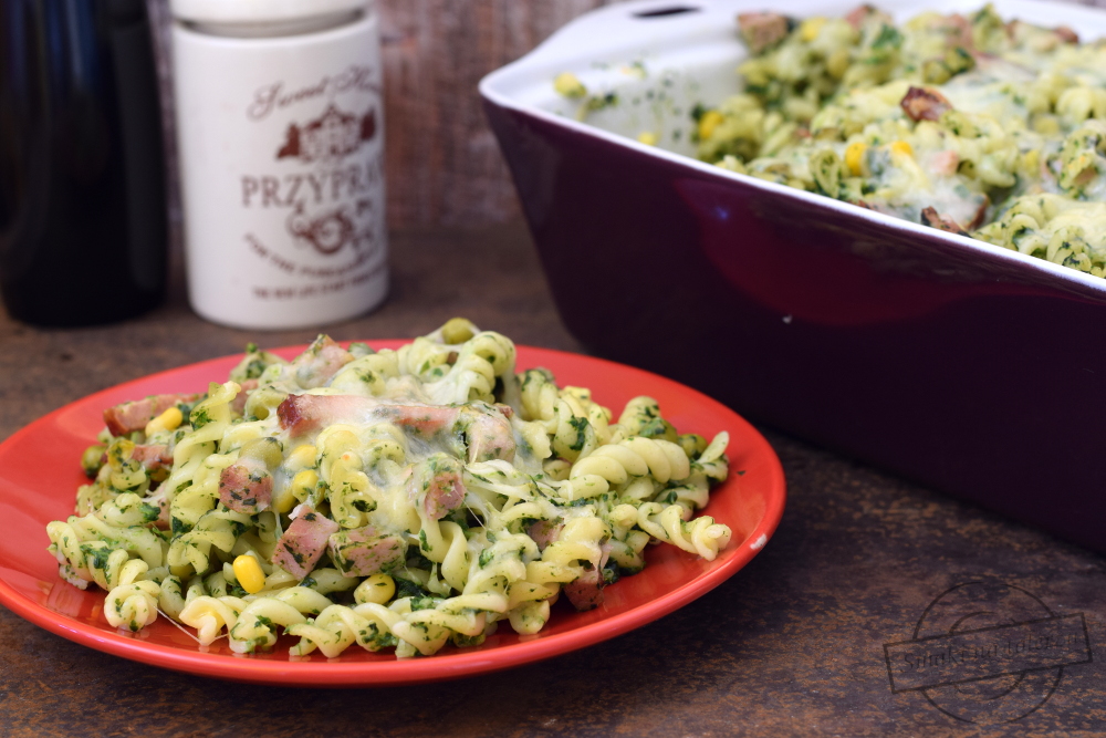 Pyszna makaronowa zapiekanka, która swój zielony kolor zawdzięcza szpinakowi. Dodatkowo dla wzbogacenia…