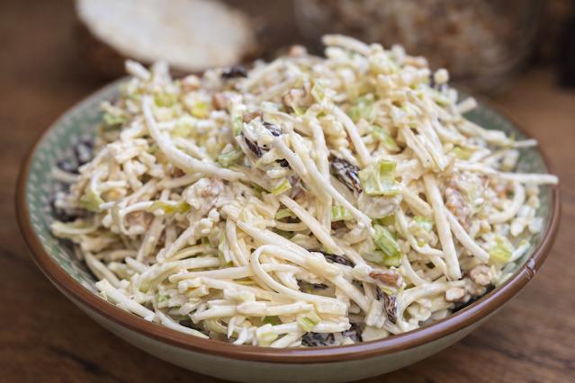 Sałatka z selera i jabłka z rodzynkami i orzechami