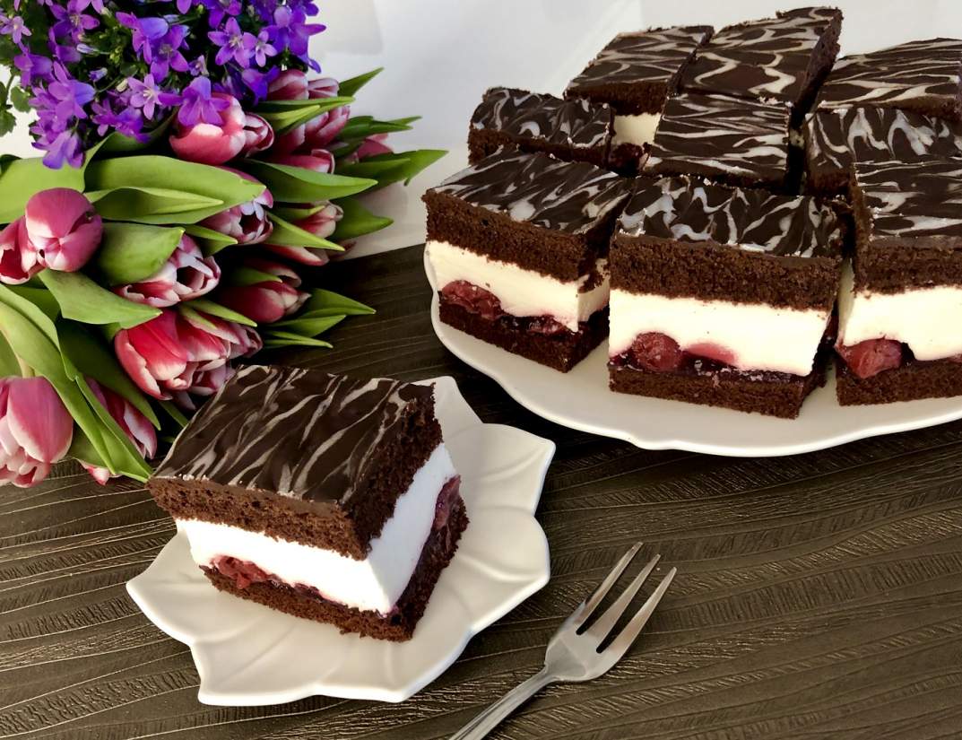 Kostka szwarcwaldzka Bardzo efektowne i mega smaczne ciasto czekoladowe przełożone frużeliną wiśniową…