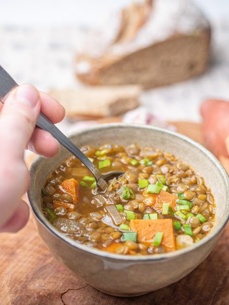 Zupa z zielonej soczewicy i batata Na półce od dłóższego czasu leżała…
