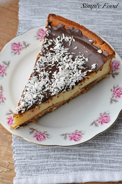 Jeśli brak Wam pomysłu na weekendowe ciasto to polecam oszukany sernik. Dlaczego oszukany? Bo nie ma w nim ani grama sera, a smakuje zupełnie jakby był 🙂 Masa zrobiona jest z jogurtów greckich wymieszanych z proszkiem budyniowym i jajkami, robi się go raz dwa, a smakuje świetnie. Mi i mojej