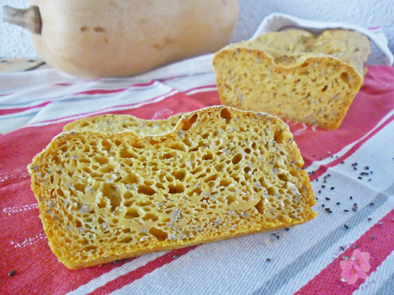Bardzo smaczny i zdrowy zamiennik zwykłego pszennego chleba. Pure z dyni nadaje mu wilgotności i delikatności a nasiona chia dostarczają cennych składników.