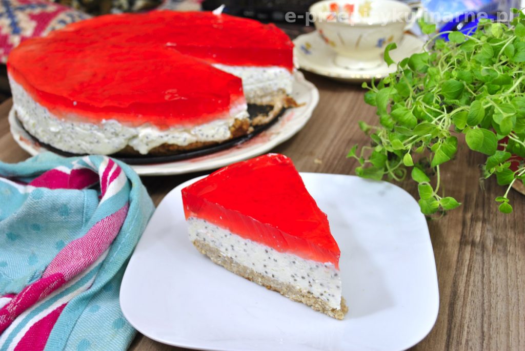 Dietetyczny i zdrowy sernik na zimno na jogurtach greckich, z dodatkiem serka mascarpone i nasion chia. Jeśli sernik podzielmy na 12 porcji, to jedna będzie miała 368 kcal.