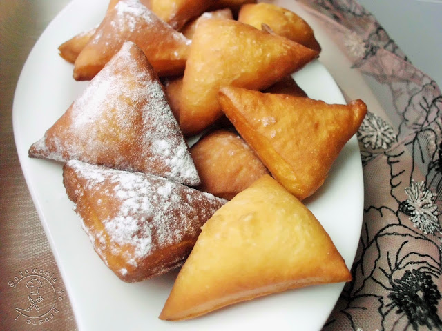 Super przepis znalazłam kiedyś w starym kalendarzu moje mamy i czekał sobie dość długo zanim go wypróbowałam. Nie potrzebnie tak zwlekałam, bo pączusie, trójkąciki wychodzą super smaczne i łatwo można je przechowywać, a że z jednej porcji wychodzi ich coś około 40 więc cała rodzinka na pewno ich posmakuje 😉
