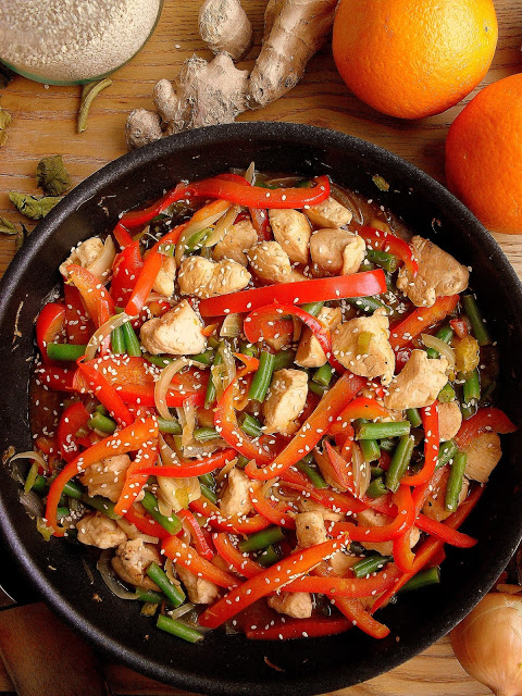 Sezon na pomarańcze wciąż trwa i warto wykorzystywać je do aromatyzowania słodkich wypieków. Ostatnio publikowałam przepis na słodkie, pomarańczowe bułeczki, a dziś proponuję wypróbować te owoce do wspaniałego dania inspirowanego kuchnią azjatycką. Kurczak w sosie pomarańczowym jest niezwykle aromatyczny, słodki, pikantny i lekko kwaśny – obowiązkowo