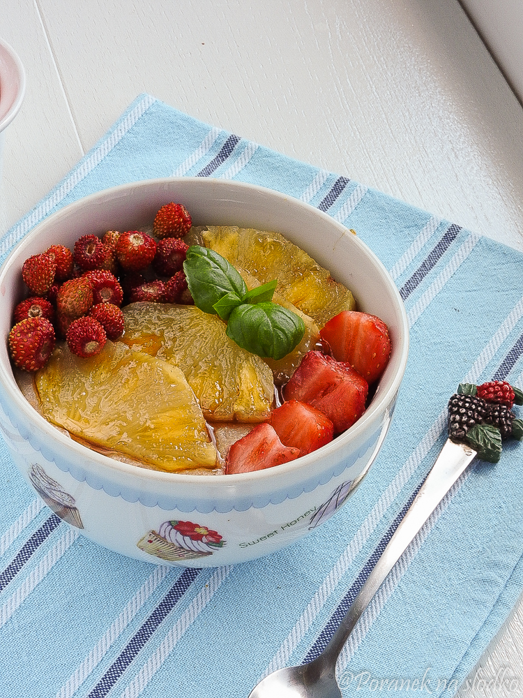 65 g komosy ryżowej200 ml mleka migdałowego150 ml mocnego naparu z herbaty „Warme Mitte” marki Herbariaszczypta solikilka kropli ekstraktu z migdałówłyżka mąki migdałowej2 łyżki syropu klonowego