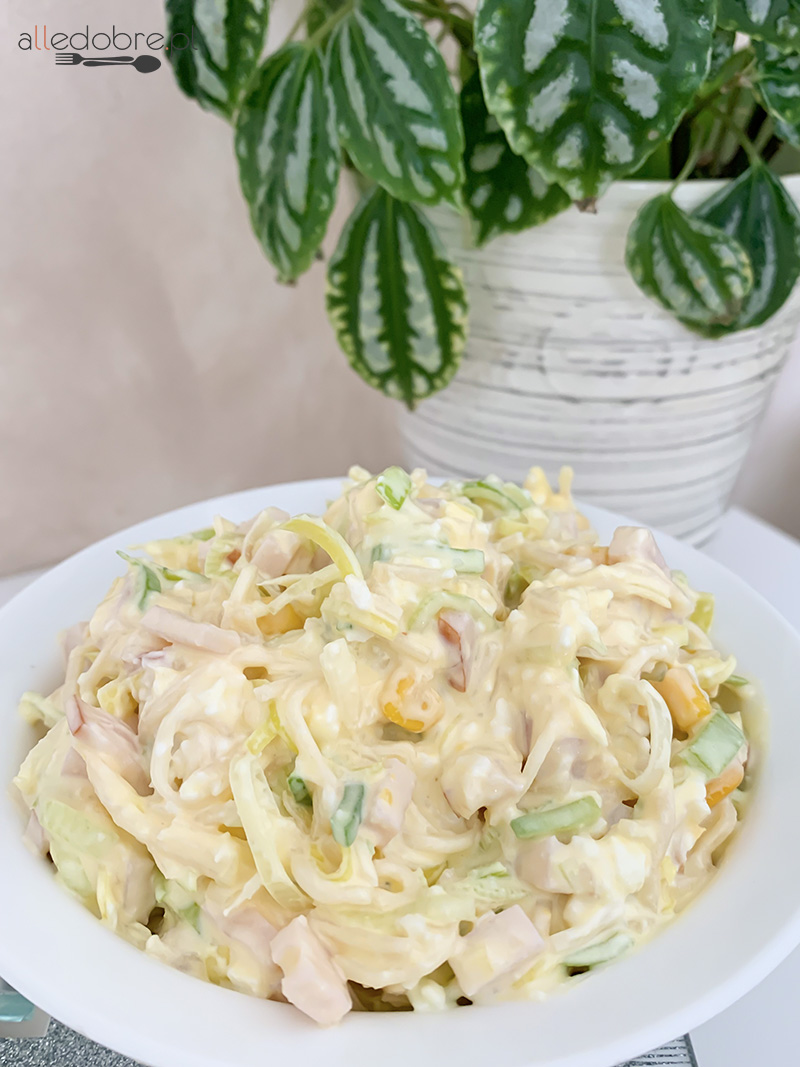 Tortellini to makaron, który możemy kupić z przeróżnymi nadzieniami. Sałatka z jego zastosowaniem jest błyskawiczna! Wystarczy ugotować makaron, pokroić pomidora i dodać pozostałe składniki. Zostało jeszcze wymieszać składniki sosu i to wszystko….Składniki układamy na półmisku i sałatka gotowa! Doskonała dla wszystkich leniuchów którzy nie lubią spędzać dużo czasu w