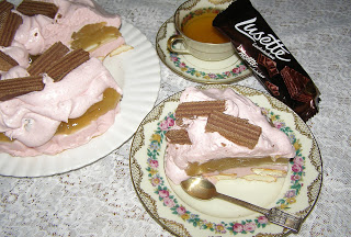 sok jabłkowy 1 litr, jabłka 2 sztuki, żelatyna na 1 litr 1 opakowanie, jogurt naturalny 380 ml, galaretka poziomkowa 1 opakowanie, biszkopty okrągłe 1 opakowanie, bita śmietana w proszku 1 opakowanie, galaretka poziomkowa 1 opakowanie, mleko 3,2% zimne 200 ml, wafelki czekoladowe Lusette 50 gram „zobacz TUTAJ