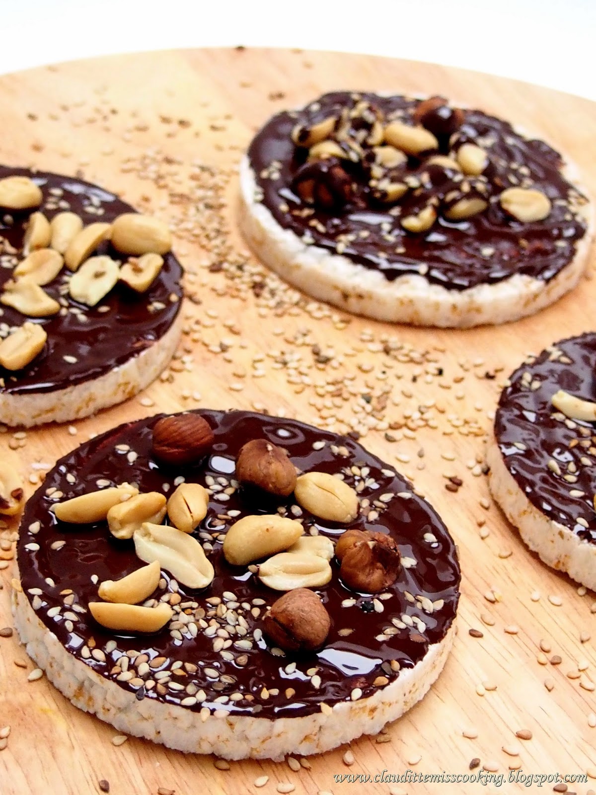 Wafle ryżowe w gorzkiej czekoladzie i z orzechami.