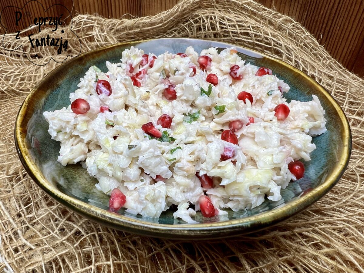 Coleslaw z granatem i jabłkiem to pyszny dodatek do obiadu. Wielka garść…