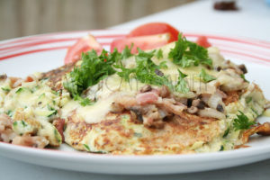 Omlet z cukinią to kolejna odsłona serii Śniadanie z Jajem. Nie spodziewałam się by cukinia z jajkiem mogła tak wyśmienicie smakować. W oryginalnym przepisie wszystko zostało podsmażone na maśle, ja zastąpiłam to boczkiem 🙂 Każdy, kto woli wersję bez mięsa, może użyć masła lub smalczyku – najlepiej domowego. Z poniżej