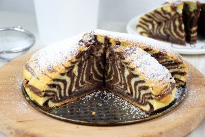 Bez wątpienia to jedna z lepszych babek jakie jadłam. Jest delikatna, wilgotna z przeplatanym smakiem kakao. Zrobienie tytułowej „zebry” jak się okazuje jest bardzo proste, a po upieczeniu dość efektowne. Osoby, które mało pieką również nie powinny mieć najmniejszego problemu z jej wykonaniem.