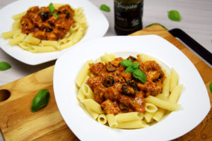 Penne z kurczakiem i czerwonym pesto