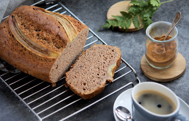 Chlebek bananowy z mąką orkiszową słodzony daktylami i cukrem kokosowym lub trzcinowym to dla nas zdrowsza wersja słodkiego pieczywa. Gdzie tylko możemy dodajemy przeciwzapalne przyprawy więc i w chlebku znajdziecie cynamon i kurkumę. Cenna dla naszego organizmu kurkumina rozpuszcza się tylko w tłuszczach, w połączeniu z olejem kokosowym chlebek staje