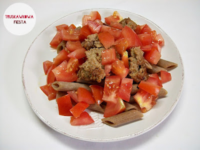 Mięso mielone z indyka z pełnoziarnistym makaronem i pomidorem