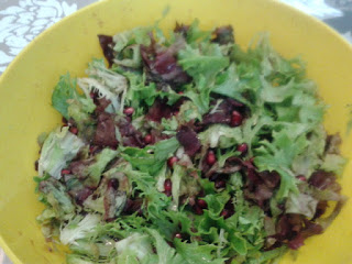 Sałata rzymskasałata czerwona karbowana ciemny sos vinegre pestki granata sól pieprz Oba…
