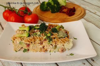 Zapiekanka makaronowa z tuńczykiem, brokułami i suszonymi pomidorami