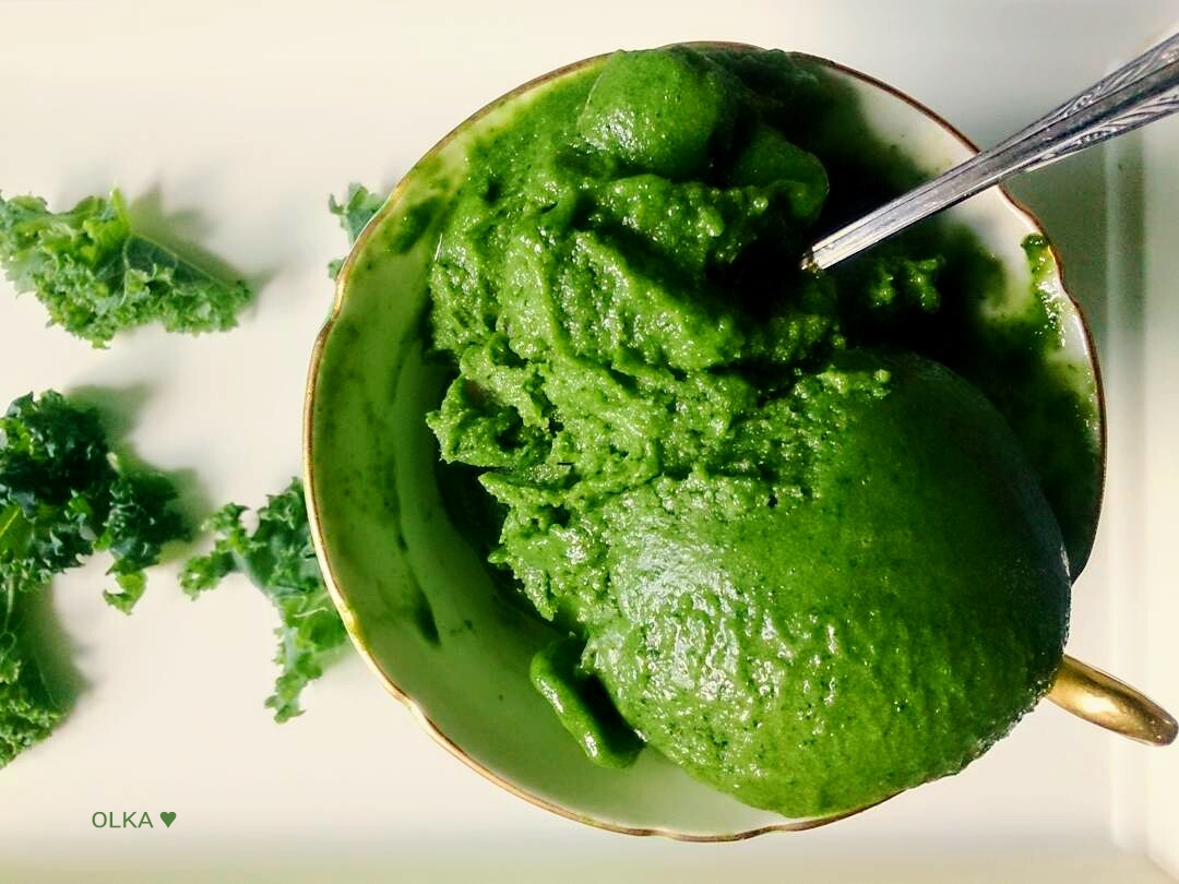 Green morning 😉 co powiecie na zielone, zdrowe lody? O lodach na bazie mrożonych bananów pewnie już słyszeliście. O zielonych z herbatą matcha, młodym jęczmieniem czy szpinakiem pewnie też. A z jarmużem? Muszę przyznać, że o ile szpinak uwielbiam o tyle do jarmużu wciąż się przekonuję. W moim odczuciu