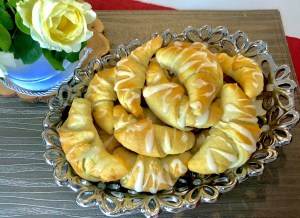 Krucho-drożdżowe rogaliki z jabłkami Dziś zapraszam na proste, szybkie i przepyszne rogaliki…