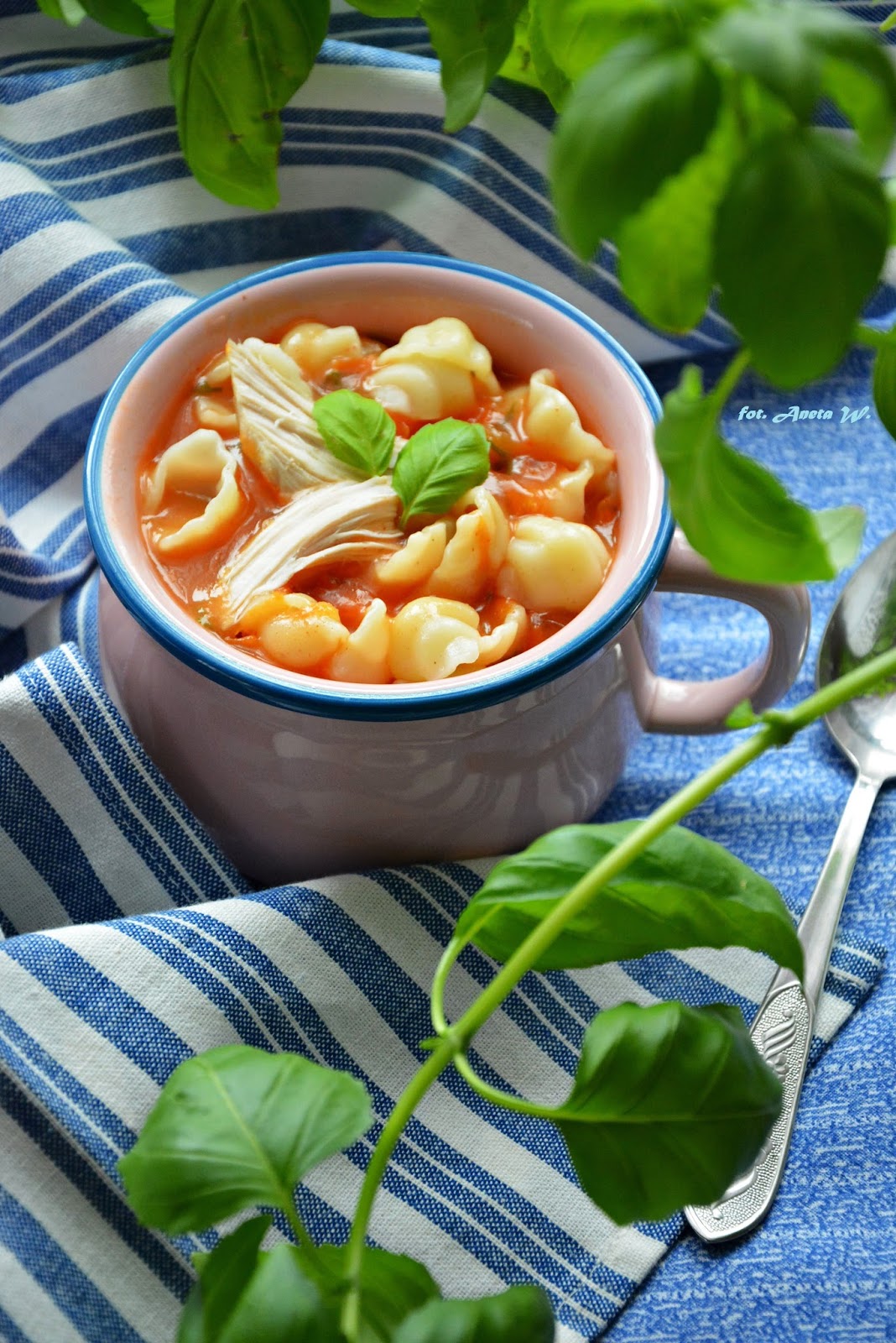 Pyszna, aromatyczna i sycąca zupa pomidorowa podana z makaronem czy ryżem może z powodzeniem stanowić cały posiłek – ja bardzo rzadko gotuję obiady na dwa dania, taka sycąca zupa nam wystarcza. Świetna propozycja dla dzieci, moje dziewczynki zajadają się pomidorową i chyba nawet nie znam dziecka, które by pomidorowej