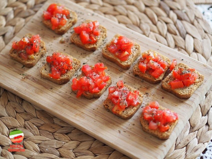 Klasyczna przekąska włoska w wersji mini. Bagietka została zastąpiona mini sucharkami, ale…