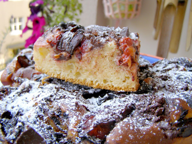 łatwe, mieszane drożdżowe śliwkowo-czekoladowe ciasto…