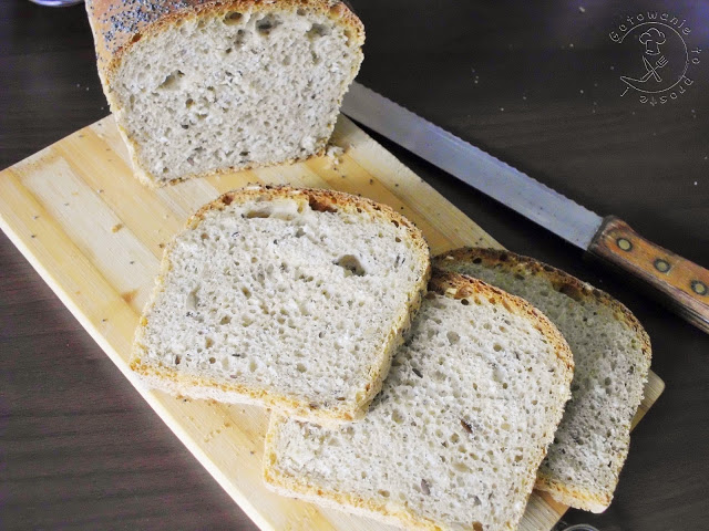Teraz postanowił troszkę pokombinować i tu miłe zaskoczenie, taki pyszny drożdżowy chlebek mu wyszedł. Chlebek jest naprawdę