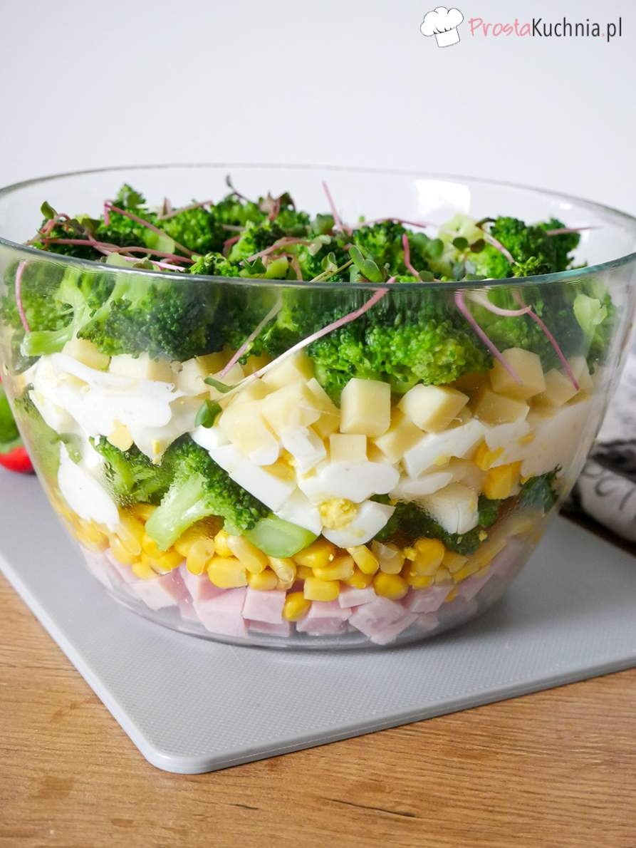 Warstwowa sałatka z brokułem i jajkiem, bardzo pożywna, smaczna i łatwa do…