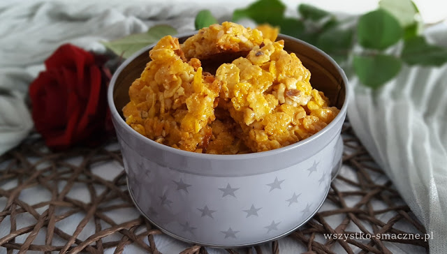 Orzechowe ciastka z płatków kukurydzianych z dodatkiem miodu to rewelacyjne i bardzo chrupiące ciasteczka.