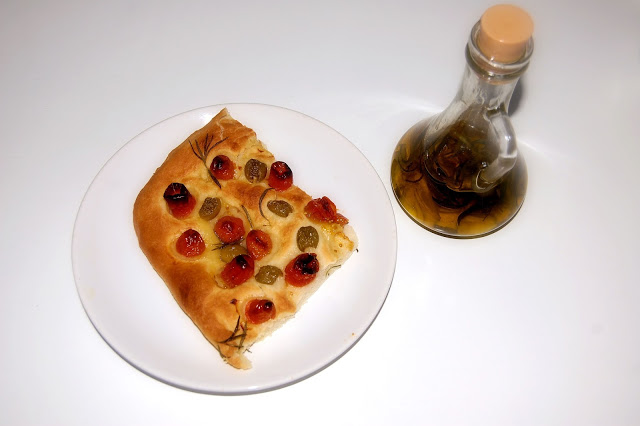 Focaccia z pomidorami, oliwkami i rozmarynem