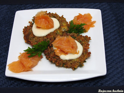 Pyszne placuszki z kaszy gryczanej polane sosem chrzanowym i łososiem wędzonym.Smaczne danie…