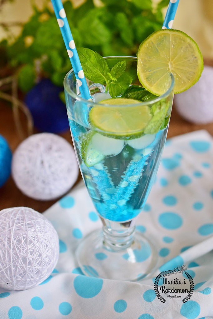 Niebieskie mojito –to drink skierowany do kobiet lubiących delikatne smaki w których nuta alkoholu jest delikatnie wyczuwalna, dodatek syropu barmańskiego blue curacao nadaje mu bardzo ładny błękitny kolor który przypomina błękit nieba latem… ach rozmarzyłam się …fajnie usiąść w altanie na ogrodzie z takim drinkiem…..w sumie..już niedługo!