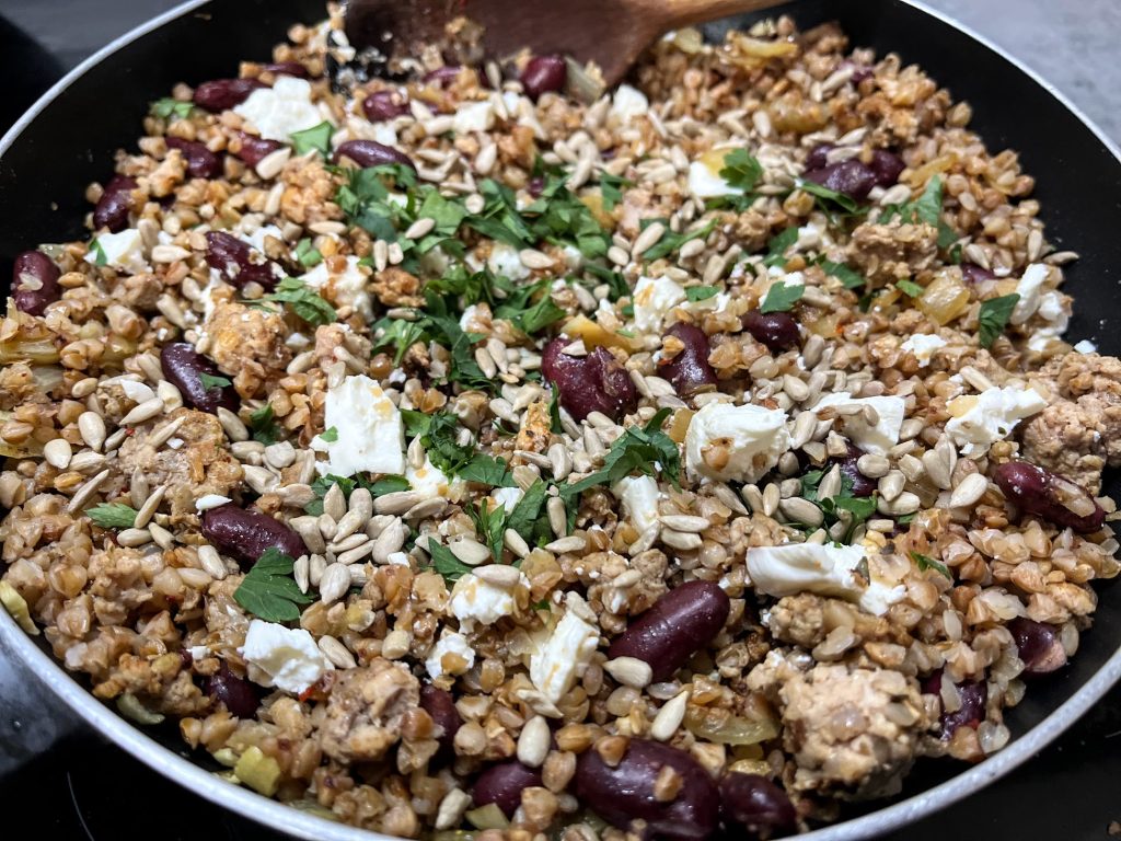 Kasza gryczana z mięsem mielonym i czerwoną fasolą