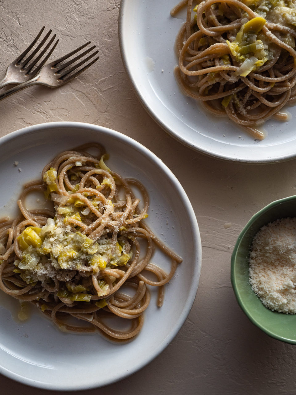 Wegetariańska carbonara z porem