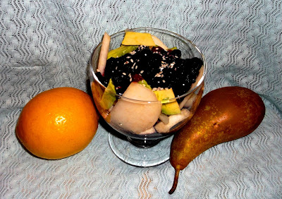 Pyszny owocowy puchar zdrowia. Ostry smak gruszki świetnie łączy się z jagodami i aksamitnym awokado.