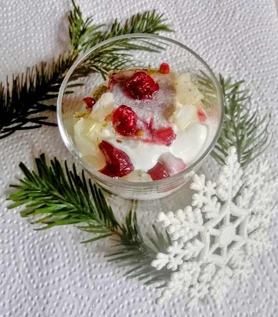 Śledzie z żurawiną w sosie jogurtowo-chrzanowym